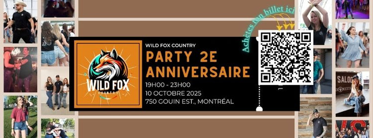 Wild Fox Country célèbre 2 ans de danse, de rires et de moments inoubliables avec sa meute. Et toi? T’es invité.e. Peu importe ton niveau, ton style, ou d’où tu viens — ici, tout le monde a sa place sur le plancher de danse.C’est pas juste un party… c’est LE party de l’année.